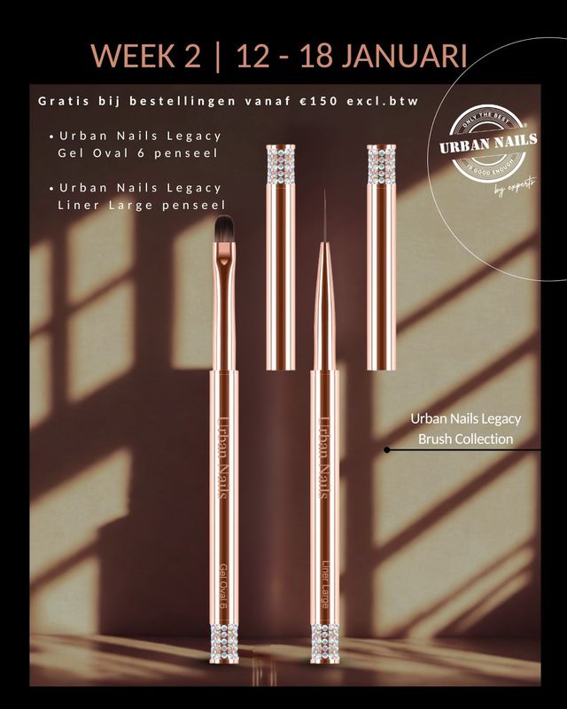 Spaar jij mee? Vanaf 5 januari 2026 kun je de Urban Nails Legacy Penselen set van maar liefst 11 stuks met houder bij elkaar sparen! 8 weken lang! Iedere week is er één (of meerdere) penseel cadeau bij aankopen vanaf €150,- (excl.btw) aan producten. Meer info, foto’s en filmpjes vind je op onze social media kanalen van MFacademy❤️