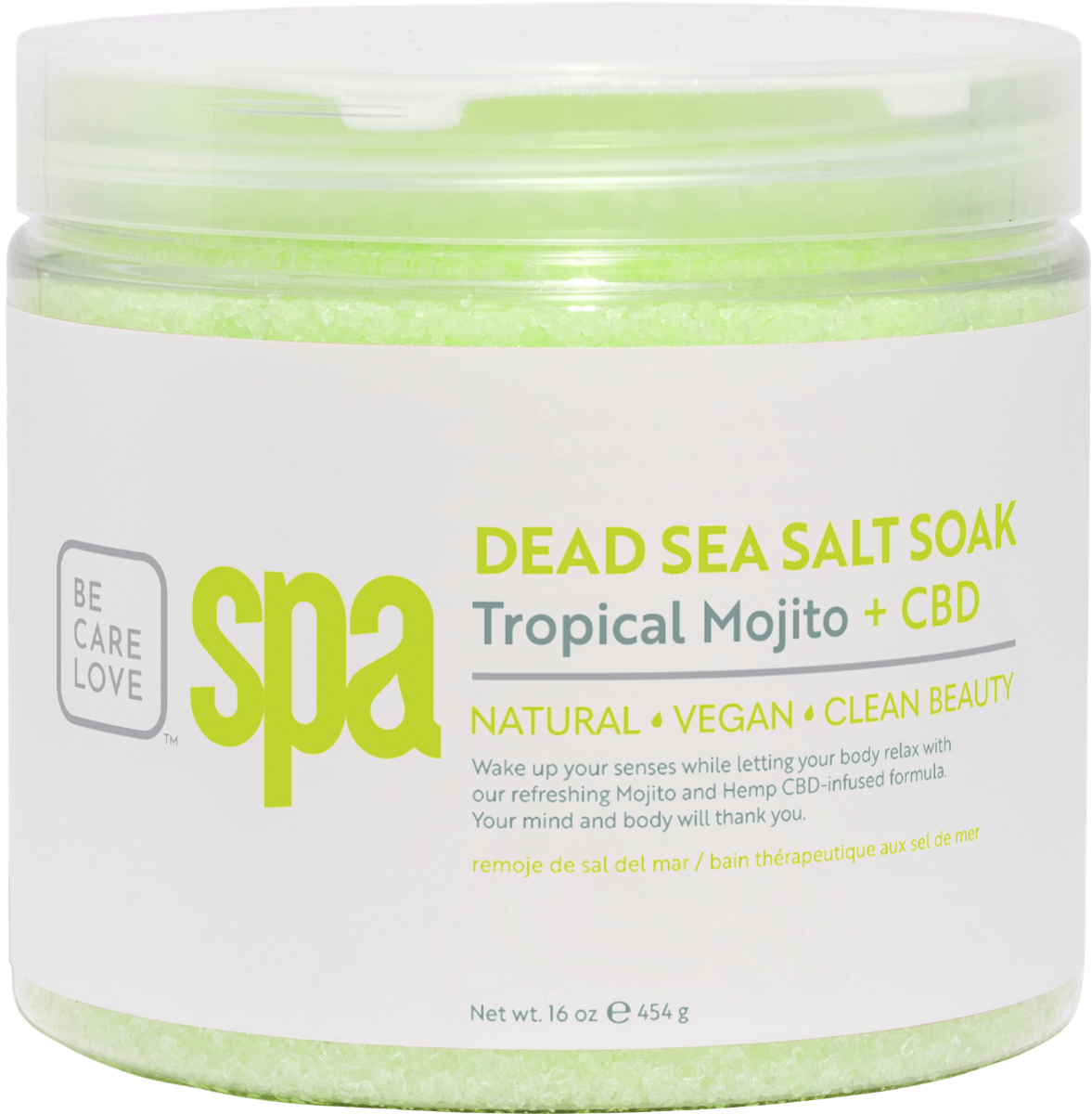 BCL SPA Dead Sea Salt Soak -Tropical Mojito + CBD 473 ml. Stap 1