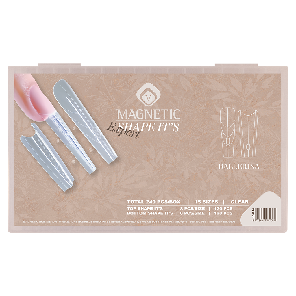 Deze EXPERT Shape it’s zijn dubbele Shape It’s; bestaande uit twee delen. De normale Shape It’s zoals je deze kent en een extra Shape It die je onder de natuurlijke nagel plaatst zodat je zonder lekkage nog dunnere nagels kunt maken!