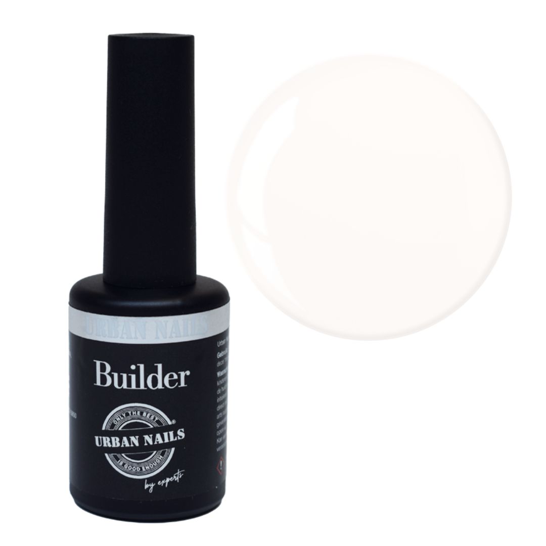 De builder is eigenlijk het product dat je in iedere behandeling , op iedere nagelplaat kunt gebruiken. Het is een hard gel, maar met een lage viscositeit. De gel legt zichzelf en met de juiste techniek hoef je bijna niet na te vijlen. Je kunt er Naturel Nail Treatments mee uitvoeren, nabehandelingen en zelf korte verlengingen. Uithardingstijd 1.5 min led 2 min uv light  inhoud 8 ml