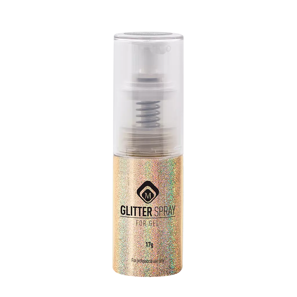 Glitter Spray Hologram Goud118058 Een Spray met fijne holografische gouden glitters. Spray de glitter over een top gel of Top coat naar keuze en hardt het daarna uit in de lamp. Geef iedere kleur een extreem holografisch glittereffect.
