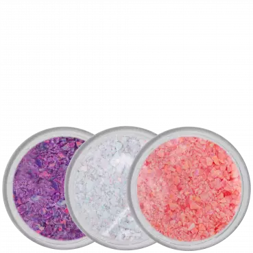 Met deze leuke Opalen (gecrunchte schelpjes) kun je prachtige inlay designs mee maken. Leg ze in een gekleurde French Manicure voor een prachtig 3D effect.